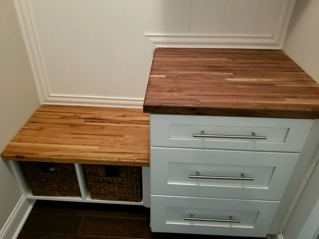 So whether you need new kitchen cabinets installed, updates to windows and moldings, repairs to your floors or walls, something else, or even custom Murphy beds or butcher blocks, let’s get started!